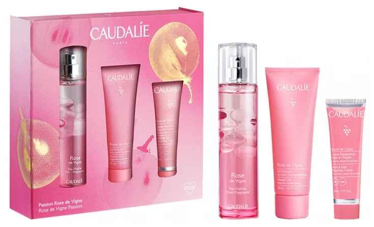 Caudalie Rose de Vigne Passion Set is a set composed of a trio of fragranced cares with fresh, floral notes of Rose and tangy rhubarb.