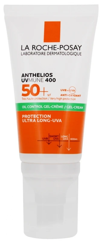 La Roche-Posay Anthelios UVmune 400 Gel-Cream Oil Control SPF50+ With Fragrance 50ml is a very high protection sunscreen (SPF50+) for oily and sensitive skin. It is formulated with the Mexoryl 400 UV filter against ultra-long UVA rays.