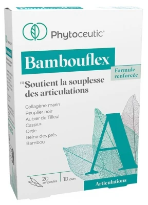 Phytoceutic Bambouflex 20 Phials is a dietary supplement that combines marine collagen with 5 aqueous plant extracts: poplar, meadowsweet, bamboo, linden sapwood, nettle and reinforced with a dry blackcurrant extract. Blackcurrant leaf supports joint flexibility and promotes the body’s elimination functions.