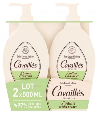Rogé Cavaillès Intimate Moisturising Care 2 x 500 ml is a soap-free surgras cleanser for intimate hygiene.