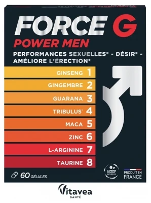 Vitavea Force G Power Men 60 Capsules is a dietary supplement with 8 active ingredients to boost your sexual performance: